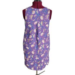 This sleeveless shift dress tells a story of breezy comfort and vibrant style. Crafted from 100% linen, its purple floral design evokes thoughts of warm, sunlit gardens. The lightweight fabric and relaxed fit make it an ideal companion for leisurely walks or casual gatherings, offering both charm and ease. Excellent pre-owned condition.