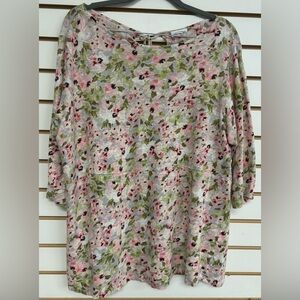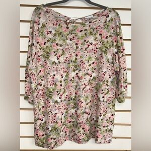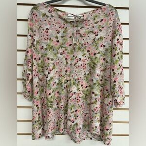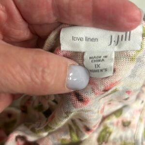 J.Jill Love Linen Floral Tied Keyhole 3/4 Sleeve Tunic - Woman’s Size 1X Linen
