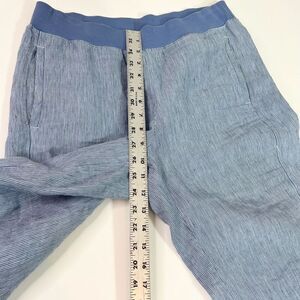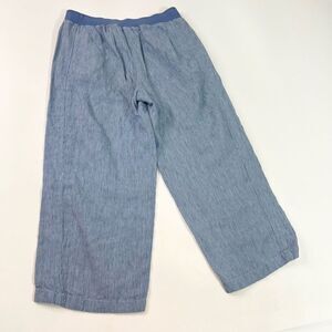 J.Jill Love Linen Pants Womens Small Blue Striped Cropped Wide Leg Elastic Waist
