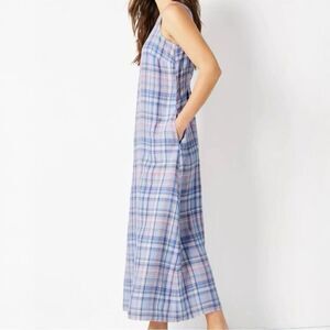 J.Jill Love Linen Plaid A-line Maxi Dress Rain Drop Blue Pink W/Pockets XS Pet