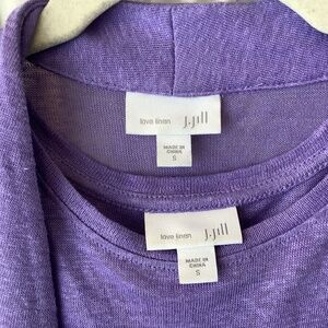 J.Jill Love Linen Purple Tank Top and matching Open-Front Cardigan set.