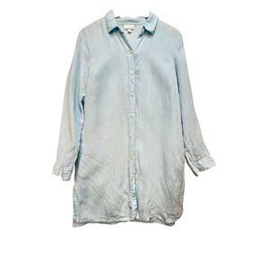 J.Jill Love Linen Shirt Dress Womens M Blue Button-Down Tunic Long Sleeve Casual