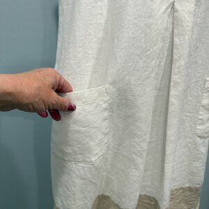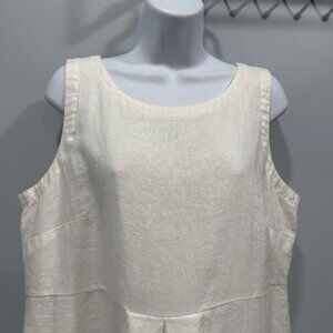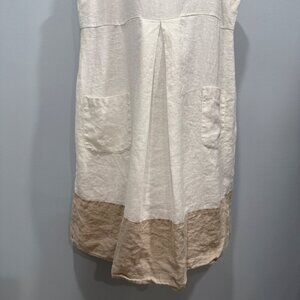 Description: J.Jill Love Linen Sleeveless Dress Pockets Cream Tan Border Beachy Coastal Size M