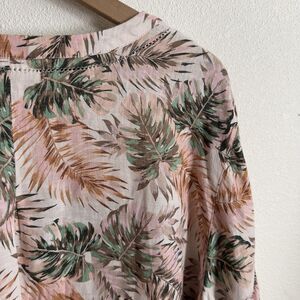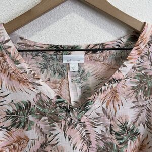 J.Jill Love Linen Top Womens XL Pink Tropical Floral Breathable Beach 100% Linen