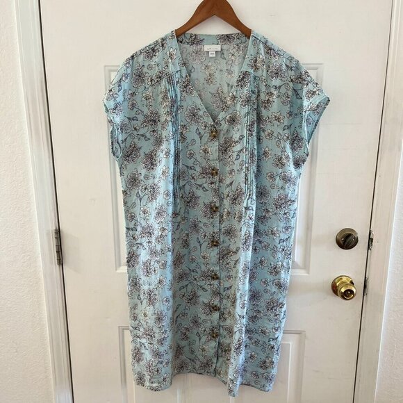J.Jill Love Linen Woman's Blue Dizi Floral Pin-Tuck Dress Sz Lr