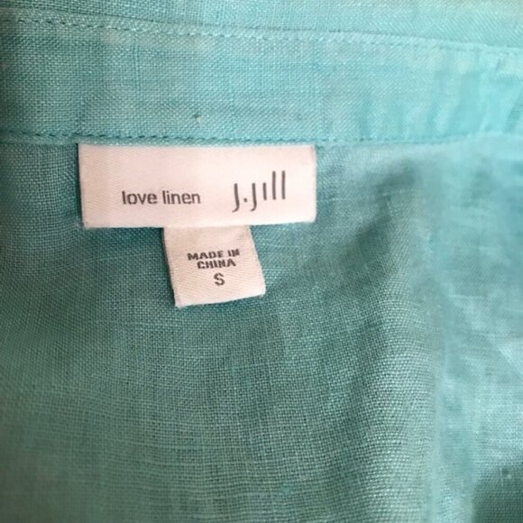 J.Jill Love Linen Women's 100% Linen Aqua Button Down Tunic Blouse Size Small