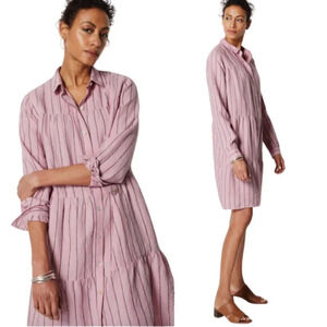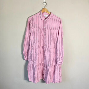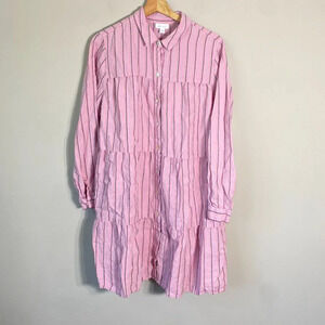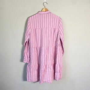 J.Jill Love Linen Womens Medium Short Sleeve Striped Tiered Button Up Mini Dress