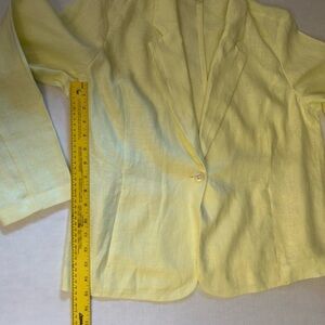 J.Jill stylish business casual or vacation travel 100% linen yellow jacket. Light weight yellow linen blazer jacket. Sz-Petite Large.