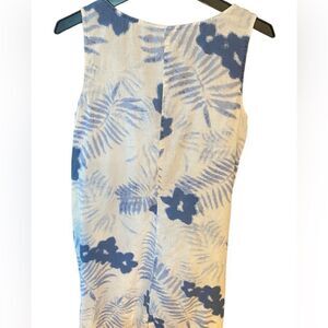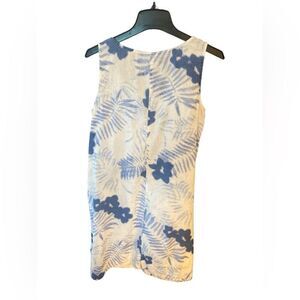 J. Jill LoveLinen Sz S Blue White Tropical Tie Dye Sleeveless Summer Shift Dress