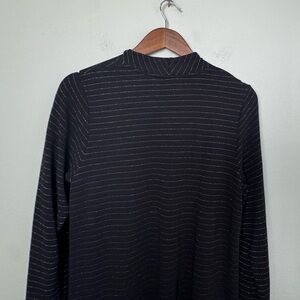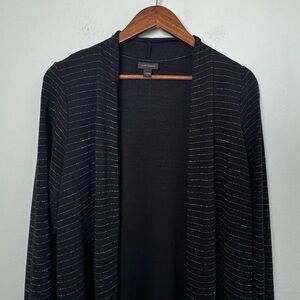 J.Jill Luxurious Wearever Ottoman-Knit Open-Front Cardigan Duster Black w/silver stripes size medium