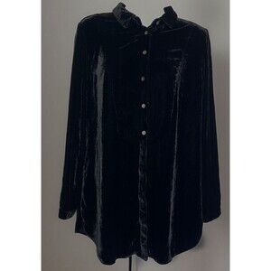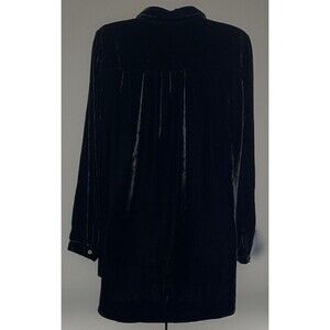 Add a touch of elegance and gothic charm to your wardrobe with this J. Jill black velvet tunic shirt. The button-up design and collared neckline give it a classic and sophisticated look, while the long casual sleeves and all-season fabric make it versatile for any occasion. The shirt is perfect for office wear, business meetings, or a casual day out. It features a solid pattern and accent buttons that add a unique touch to the garment. The shirt is made of polyester and rayon, and it is machine washable for easy care. Mother of Pearl buttons.