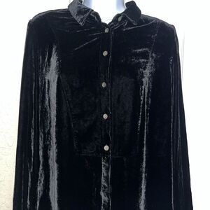 J.Jill M Women Black Velvet Button Down Tunic Goth Witch Victorian Whimsigoth