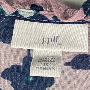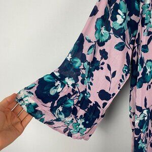 J.Jill Mauve Beautiful Blossoms Blouse Size 1X Rayon 3/4 Bell Sleeve Tie Neck
