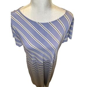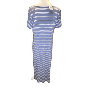J. Jill maxi dress. Size Large Petite. Short sleeve. Striped with white, blue and a dark blue or black. Brand new with tags. 95% rayon and 5% spandex. Dress measures 51” from top to bottom. Armpit to armpit measures 20”. Item is in good, new condition. Contact me with any questions.