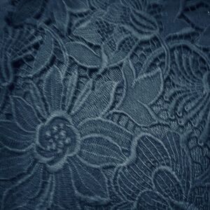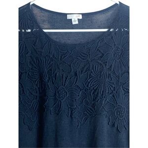 J. Jill Navy Blue Linen Blend Knit Top Large Floral Lace Overlay Women’s Sweater