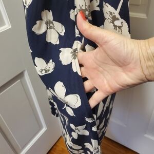 J.Jill Navy Floral A-Line Dress, pockets, 3/4 sleeve, rayon size Medium