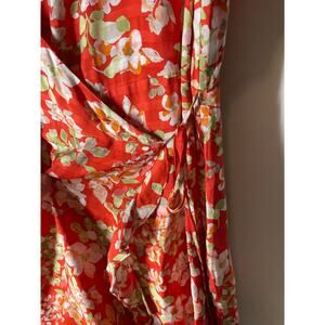 J.Jill Orange Floral Wrap Dress Short Flutter Sleeve Ruffle Hem Plus Size 2X