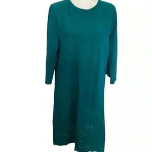 J.Jill Pacific Eyelet Trim Teal Green Shift Dress Size M (NWOT)