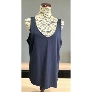 Our versatile two-in-one knit tank has a scoop neckline on one side and a V-neckline on the other .