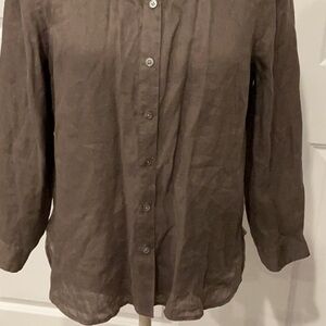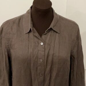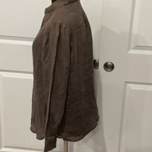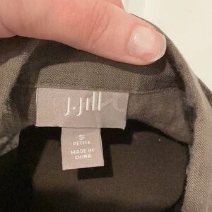 J.Jill Petite Beachy Lagenlook Olive Button-Down 100% Linen Shirt Top Size SP