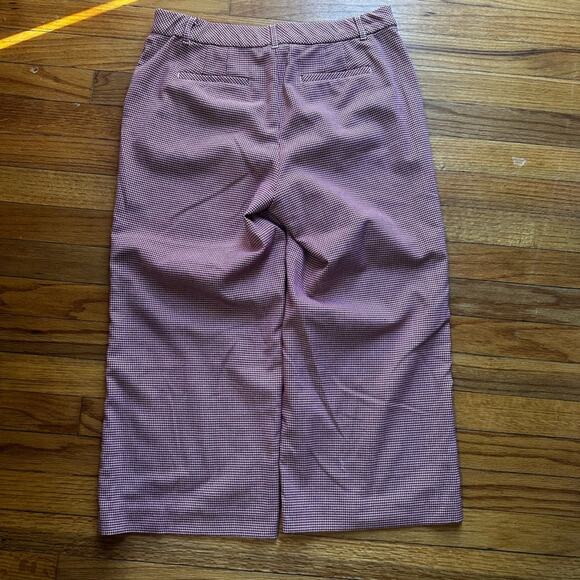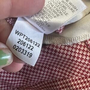 A stylish pair of J.Jill petite pants featuring a red and white houndstooth pattern with a flattering cropped wide-leg silhouette. Soft, comfortable fabric with a chic, versatile look for work or casual outings. Gently worn and well maintained, these pants bring classic pattern and modern shape to any wardrobe.