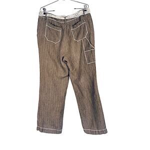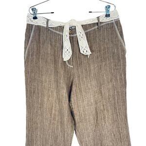 J.Jill Pinstripe Brown Linen Belted Pants Size 14-Excellent pre-loved condition. Minimal signs of wear if any.