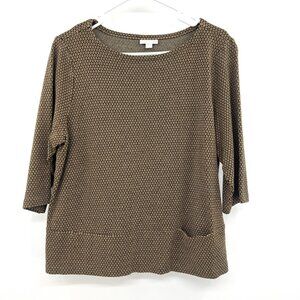 J.Jill Ponte Black Camel Print 3/4 Sleeve Knit Top Women's Large