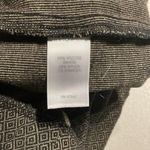 Made from a blend of spandex, nylon, and viscose, these dress pants are comfortable and machine washable for easy care. They come in a size PL for women. This item is gently used and in great condition.