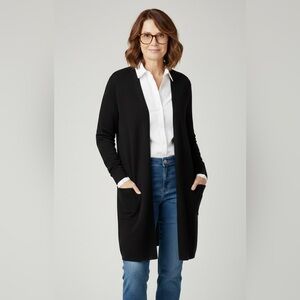EUC J.Jill Ponte cardigan sweater charcoal color. Made from thick, double-knit fabric that is wrinkle-resistant, stretchy, and comfortable.