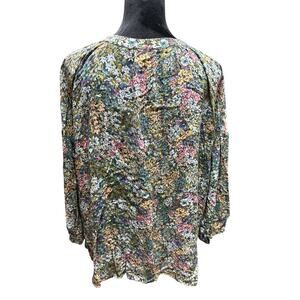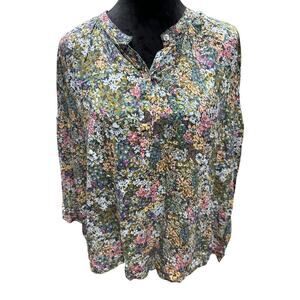 J.Jill Pullover Blouse Top 3/4 sleeves Floral Green XL lightweight colorful