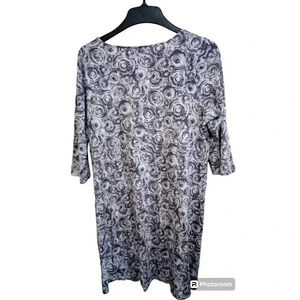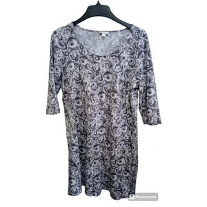 J.Jill Pure Jill Dress Empire Waist Abstract Gray Print 3/4 Sleeve Size Large
