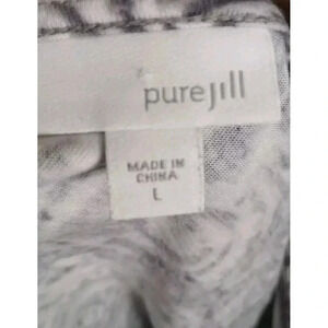 This J.Jill Pure Jill Dress in size Large features an empire waist and a flattering scoop neckline. The dress is made from a comfortable knit fabric composed of Rayon, Cotton, and Modal. The gray abstract print adds a touch of elegance to the knee-length A-line dress, perfect for casual occasions.