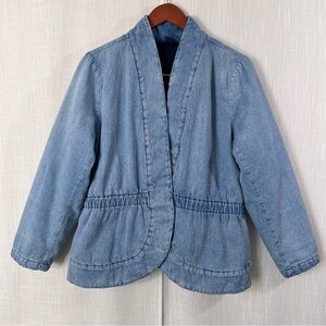 J.Jill Pure Jill Indigo Curved Hem Cotton Denim Jacket Coat Size LP