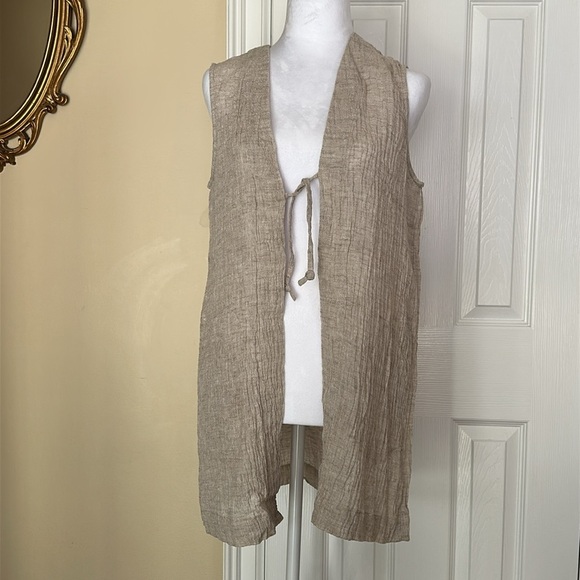 J.Jill Pure Jill Linen Crinkled Tunic Vest Lagenlook Pocket Beach Boho Neutral
