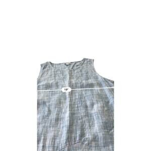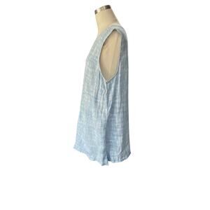 The J.Jill Pure Jill Linen Wrap Tunic in Blue is a stylish and versatile addition to any woman's wardrobe. With a sleeveless design, round neckline, and relaxed fit, this tunic is perfect for all seasons. Made from high-quality linen, it offers both comfort and breathability. The agate and white accents add a touch of interest to the classic blue color, making it easy to mix and match with different bottoms for various looks. This tunic in size large is a must-have for any fashion-forward woman.