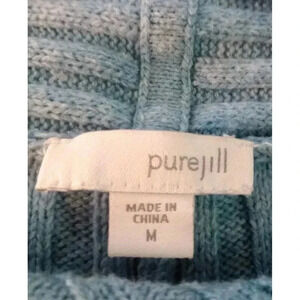 Elevate your wardrobe with this stunning J.Jill Pure Jill Open Cardigan. The wool blend material is perfect for keeping you cozy during the colder months, while the ribbed design and drop shoulder sleeves add a touch of style to your outfit. The cardigan features an open design, making it the perfect piece to layer over any outfit. The solid blue color and classic style make it a versatile addition to your wardrobe, suitable for any occasion. The sweater is available in size medium and is perfect for women who love to add a touch of elegance to their wardrobe.