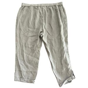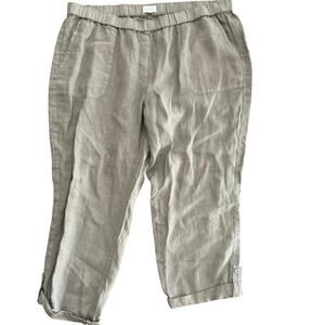 J.Jill Pure Jill Women's Green Garment-Dyed Linen Roll Tab Hem Crop Pant Size 2X