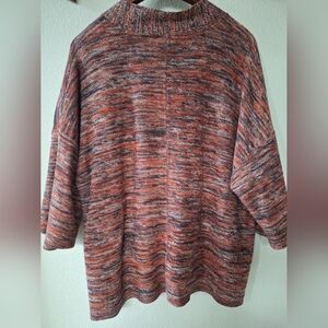 J.Jill Pure Womens Sweater. Multicolored, rust, black and white. V-neckline. 3/4 length sleeves. Relaxed oversized fit. Size S Pit to pit flat lay 26" length from collar to hem 28" measurements are approximate
