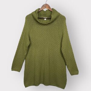 J.Jill PureJill Knit Sweater Women Size L Green Long Length Raglan Long Sleeves