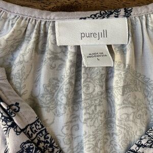 J.Jill PureJill Women's Large Paisley Print Blouse Top V Neck Periwinkle