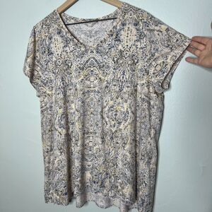 J.Jill PureJill Womens PJ Pima Ellipitical Tee XL Pink V-neck Paisley Lounge