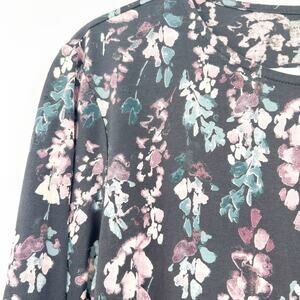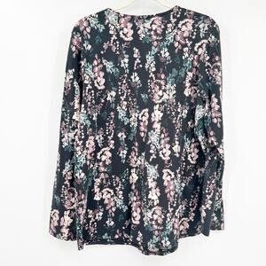 J.Jill Purejill Womens Casual Pima Cotton Floral Shirttail Long Sleeve Tee in Black Purple Green Multicolor. Size Large.
