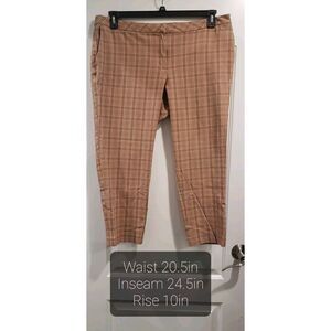Up for sale is a stylish pair of J. Jill Quinn Pants in size 20. These pants feature a beautiful plaid pattern in beige and are made of a comfortable spandex, rayon, cotton blend fabric with a twill texture. The pants have a straight leg style with a cropped length and a pleated front type.