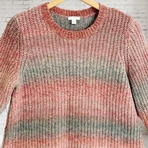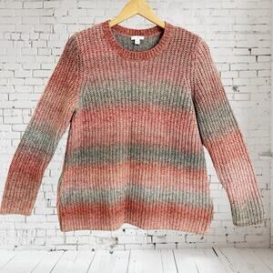 J.Jill Rainbow Striped Rib Knit Chunky Sweater M Loose Fit Warm Comfy Tunic