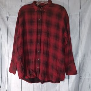 J.Jill Red And Black Plaid Long Sleeve Button Down Shirt