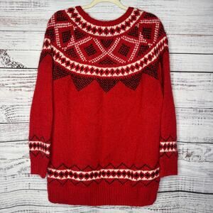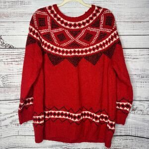 J.Jill Women’s Plus 3X Red Fair Isle Wool Blend Sweater Nordic Pullover Cozy Winter Knit