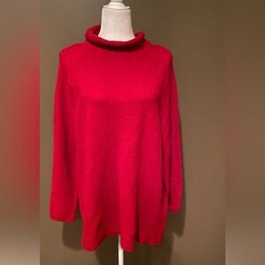 J Jill Red Sweater Size XL Petite Mock Turtleneck Wool Cotton Blend