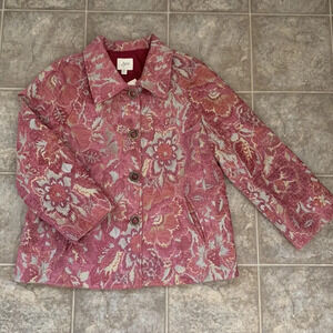 J.Jill Regency Jacquard Tapestry Floral Pink grandma playful jacket Medium