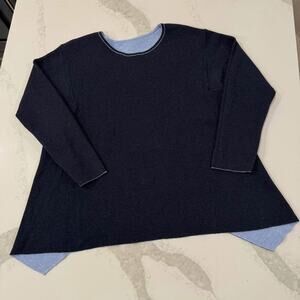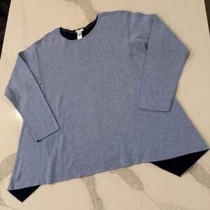 J.Jill Reversible Knit Long Sleeve Dipped Hem Sweater Women's Large Blue Preppy