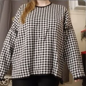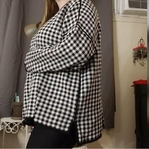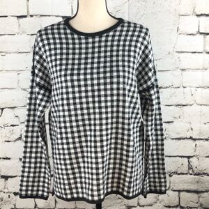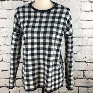 J.Jill Reversible Plaid Crew Neck Sweater In Excellent Condition, Reversible sweater!! Tag cut out, Super cute and cozy j. Jill reversible black and white squares pattern. size Medium, 65%cotton, 22% nylon, 13% viscose, no trades